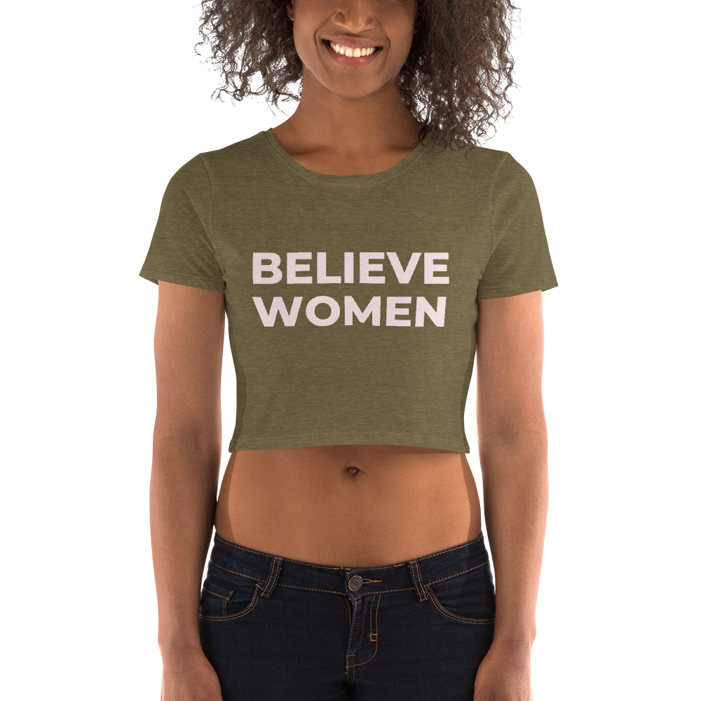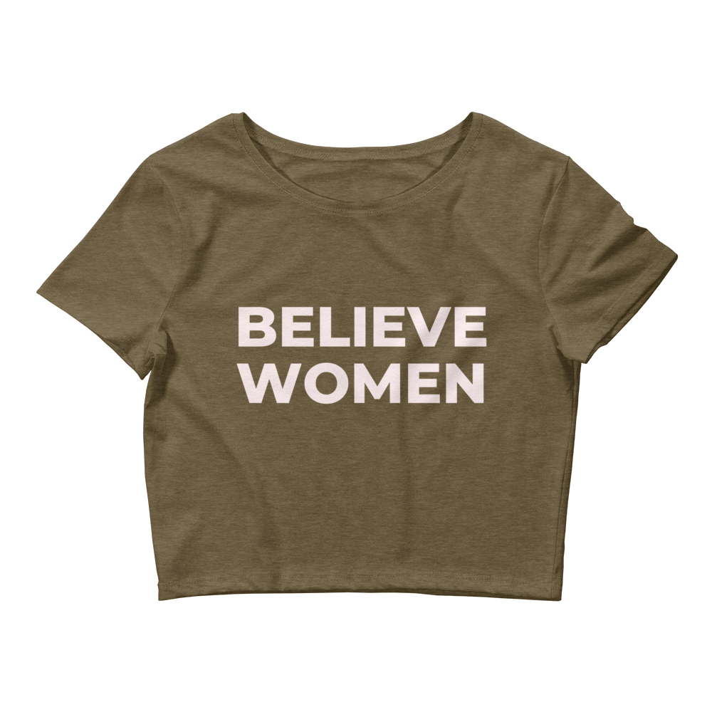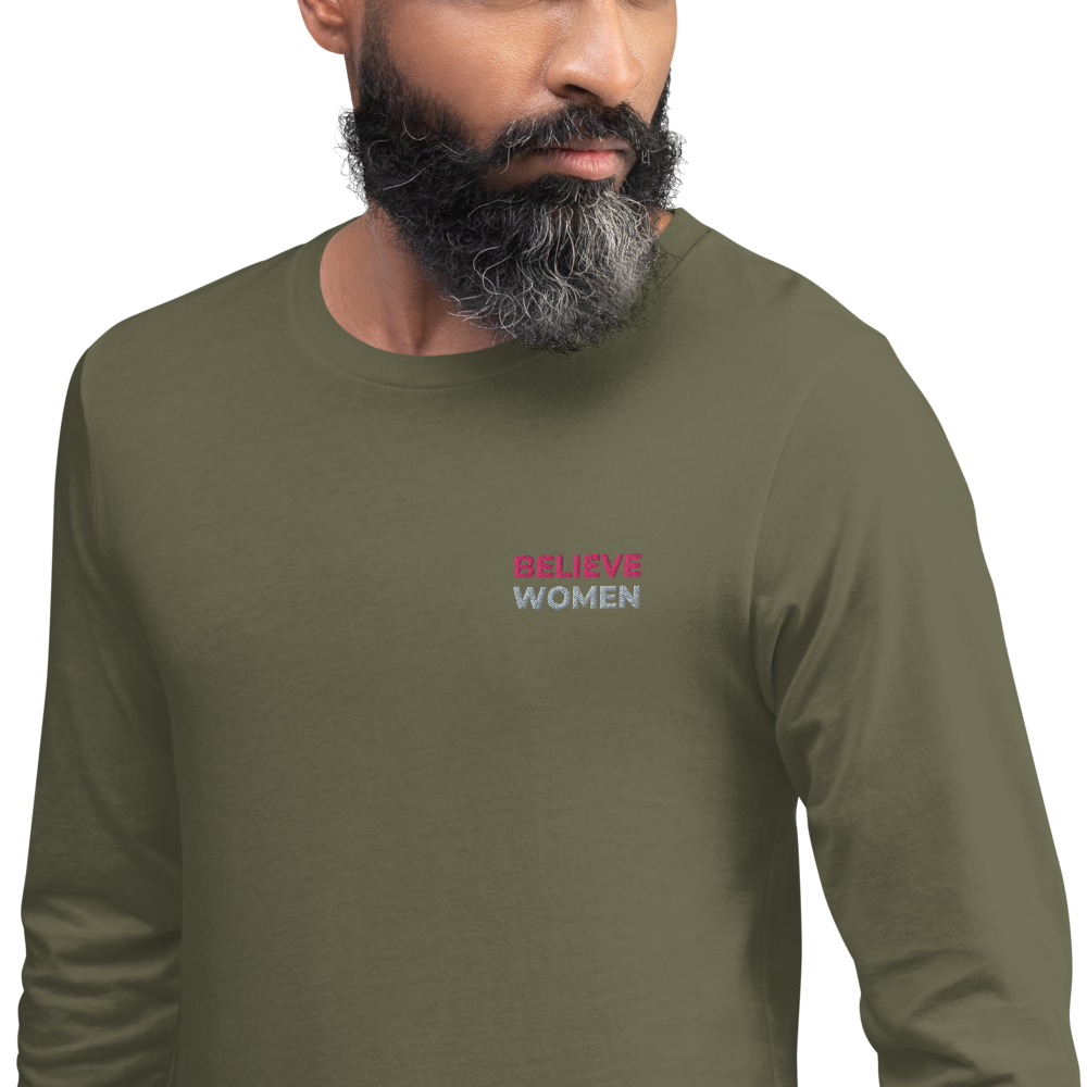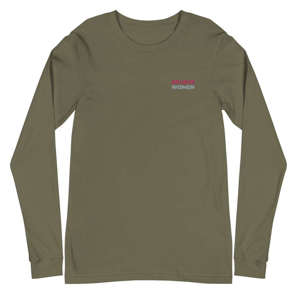 Believe Women Embroidered Long Sleeve Crew Neck - Olive Green