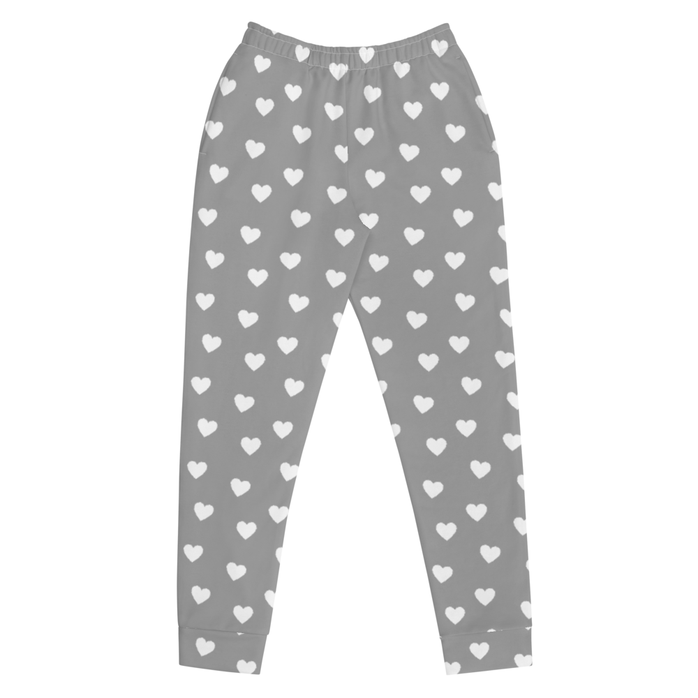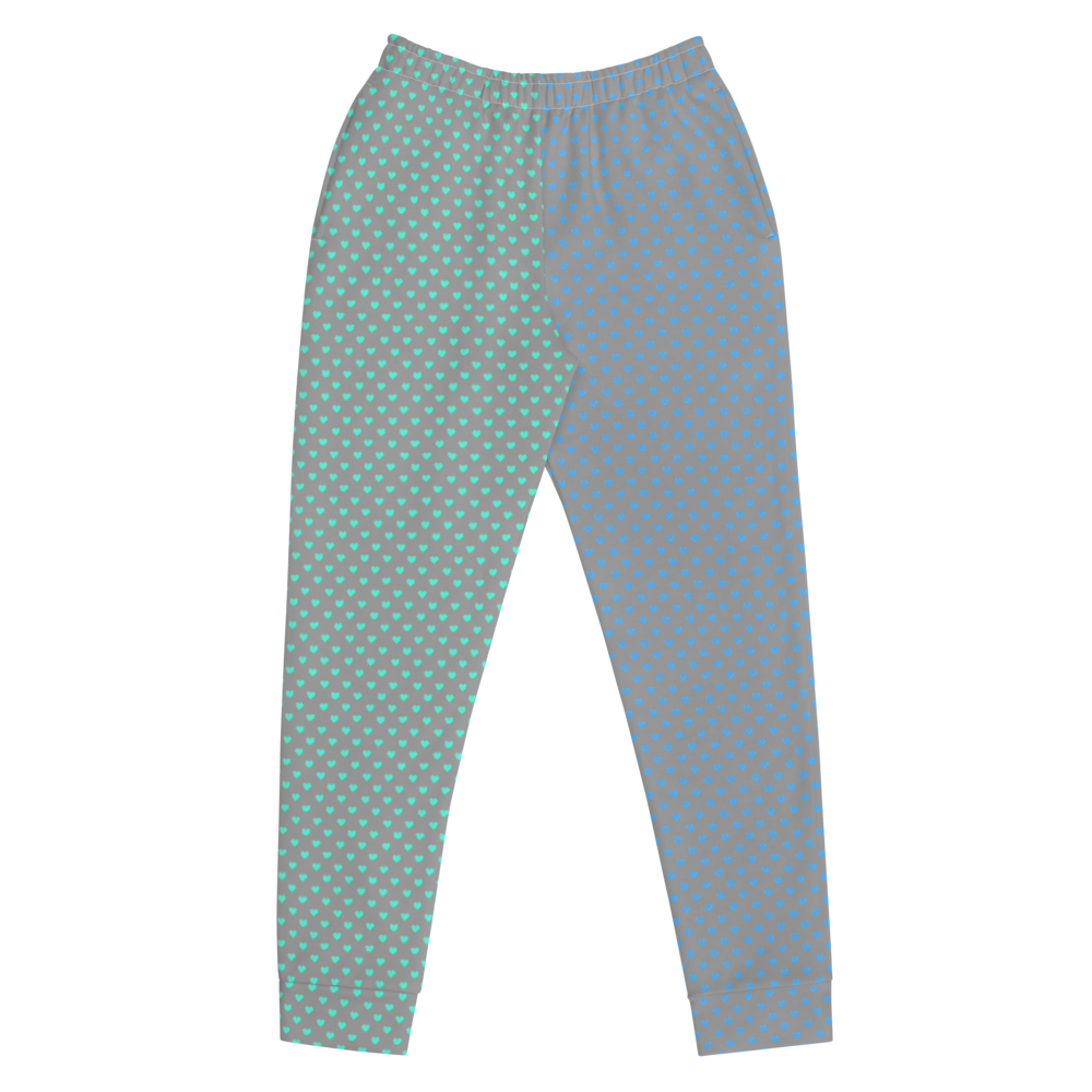 Polka Dot Heart Print Jogger Sweatpants - Two-Toned Grey/Blue