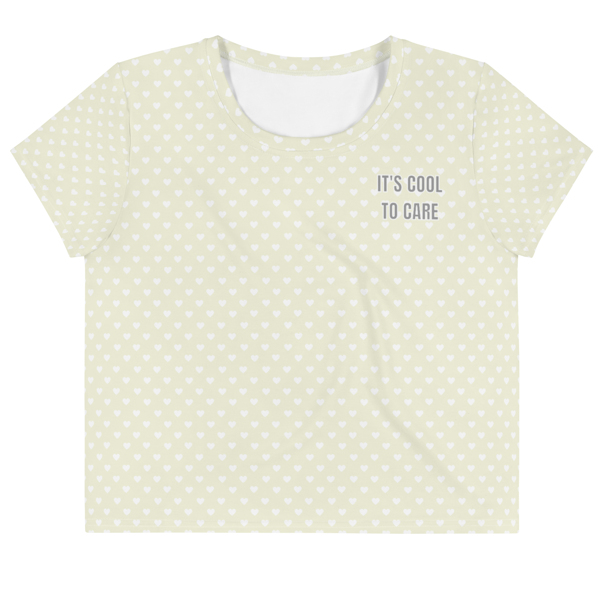 It’s Cool To Care Polka Dot Heart Print Cropped Tee - Neutral/White