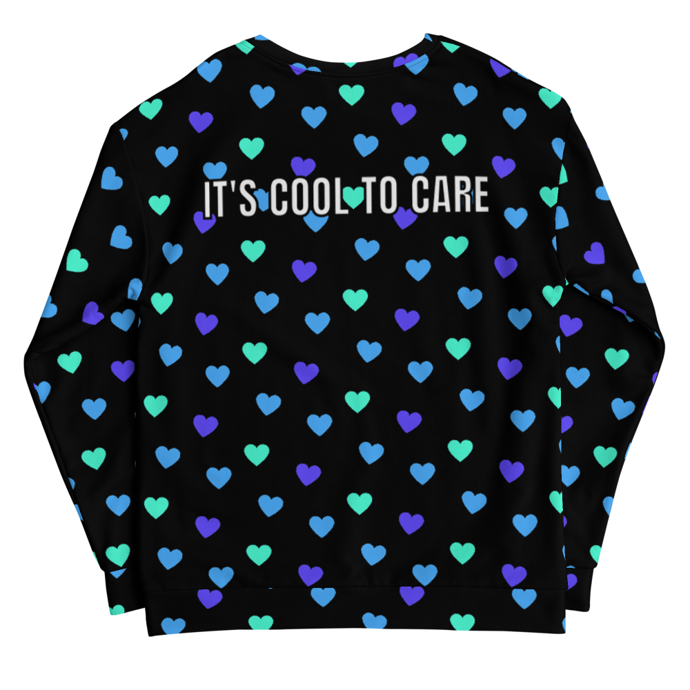 It's Cool To Care Heart Print Sweatshirt - Black/Blue