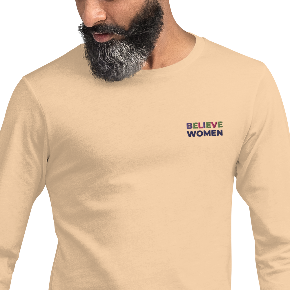 Believe Women Embroidered Long Sleeve Crew Neck - Apricot