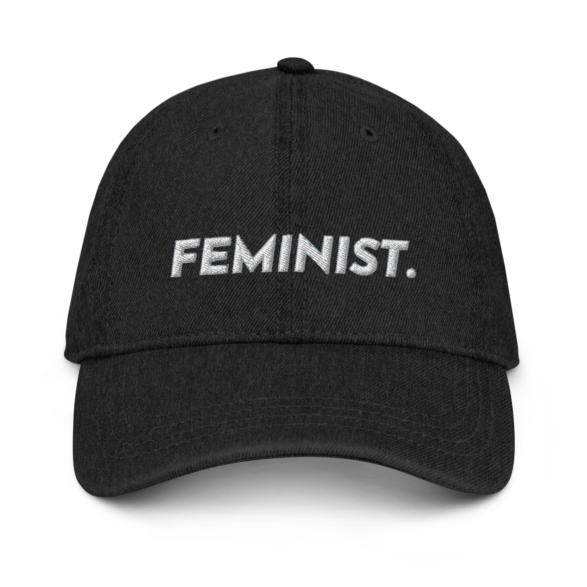 Feminist Embroidered Denim Baseball Cap - Medium Blue