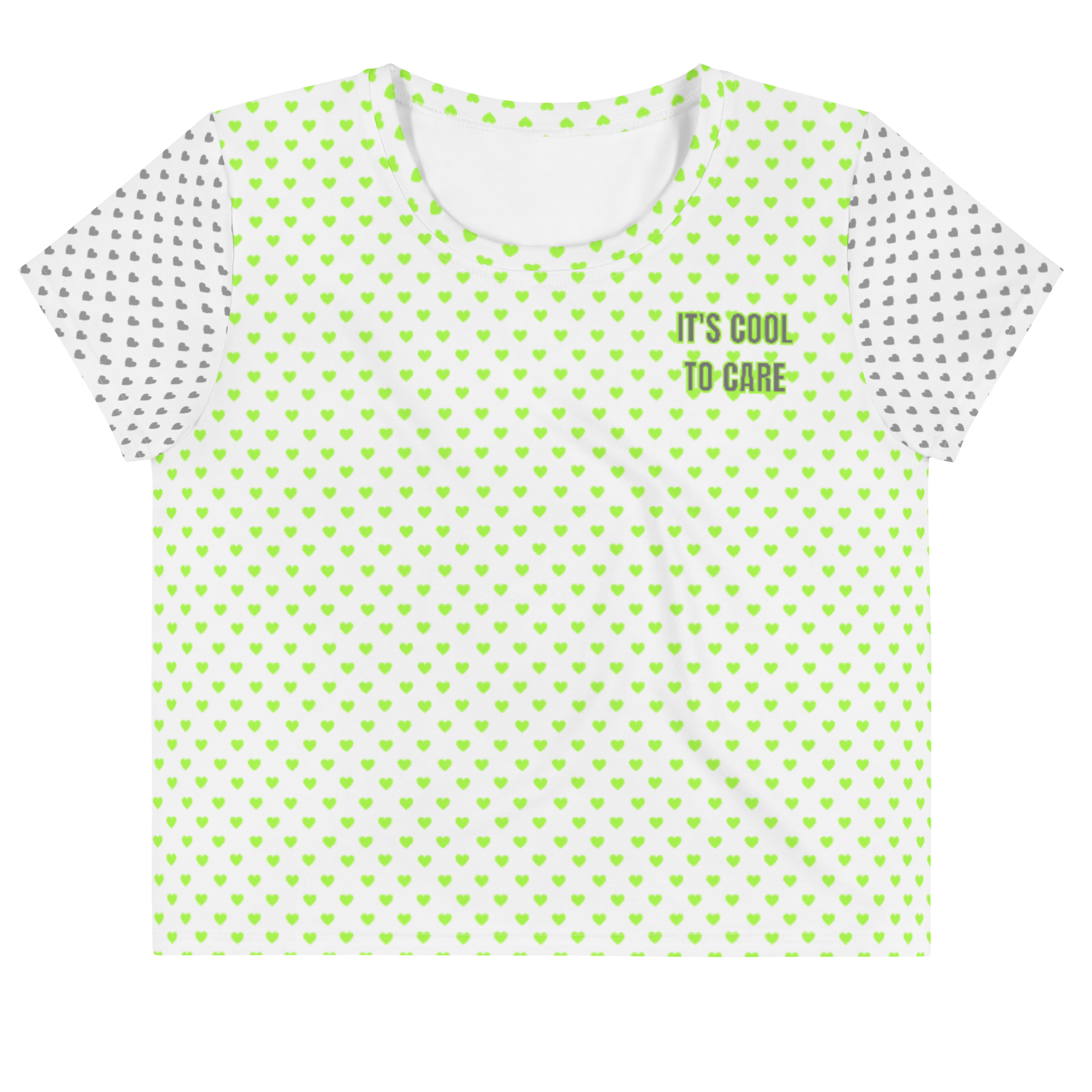 It's Cool To Care Polka Dot Heart Print Cropped Tee - Two-Toned Lime Green/Grey