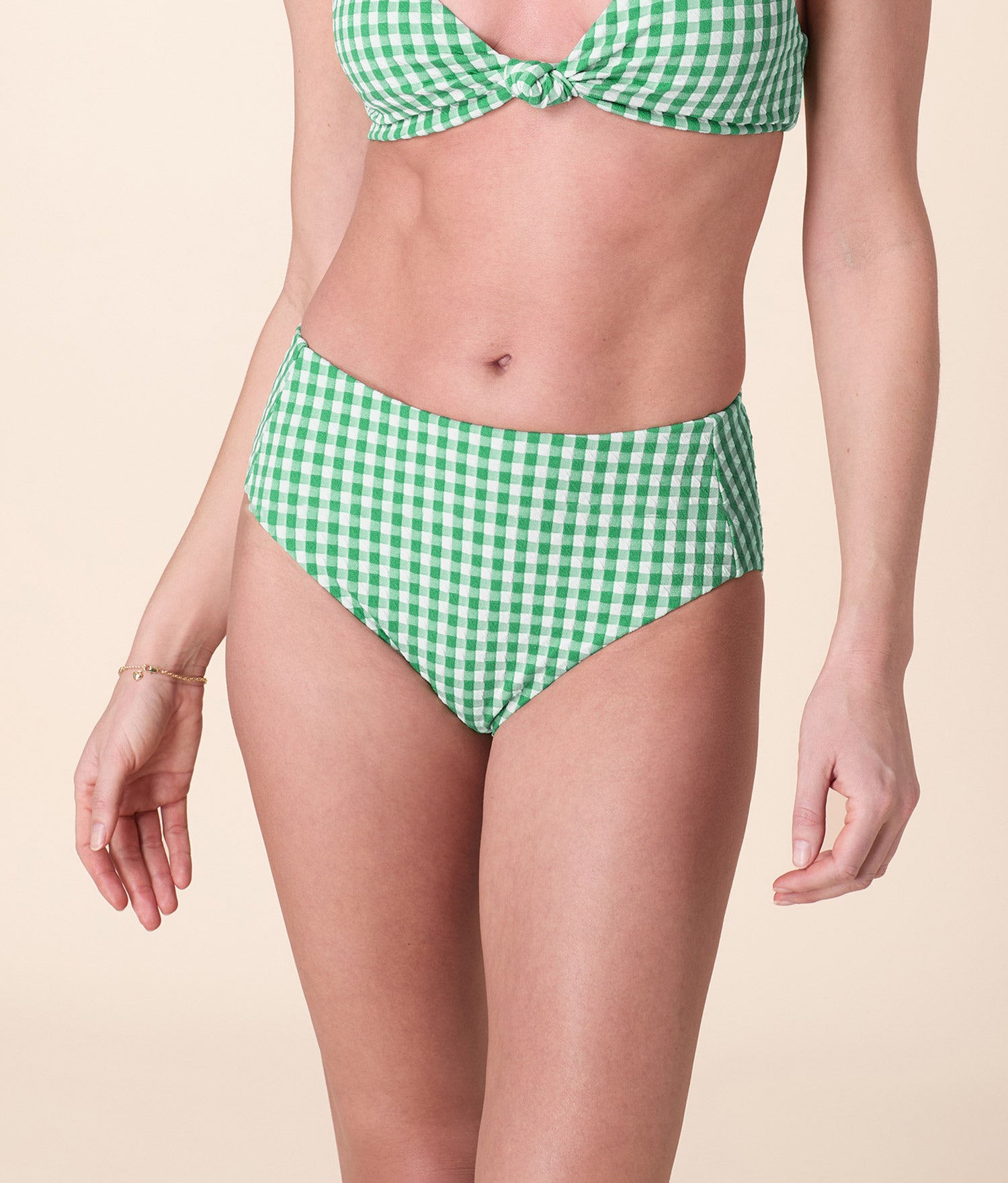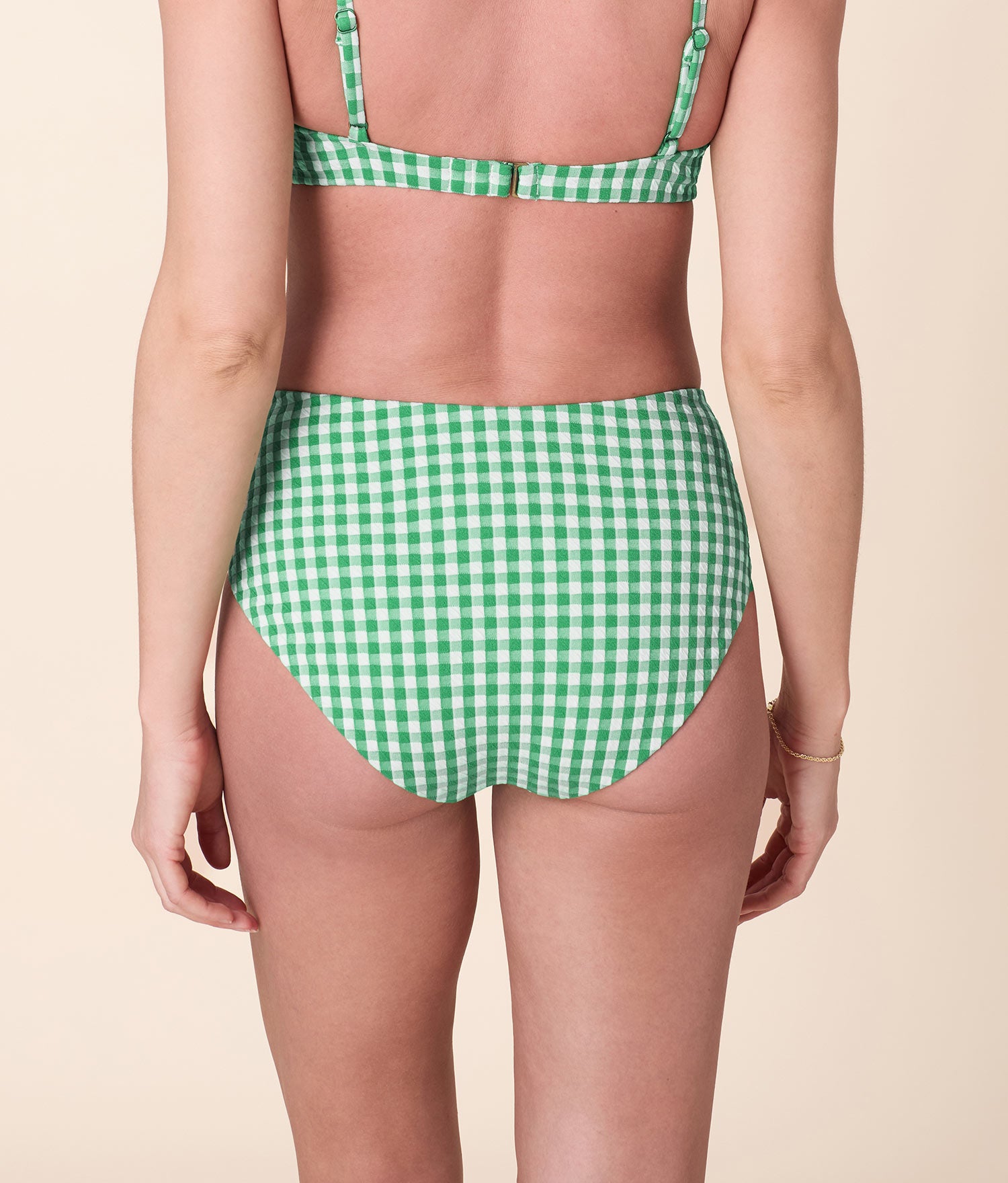 The High Rise Bikini Bottom - Crinkle Gingham - Green Gingham