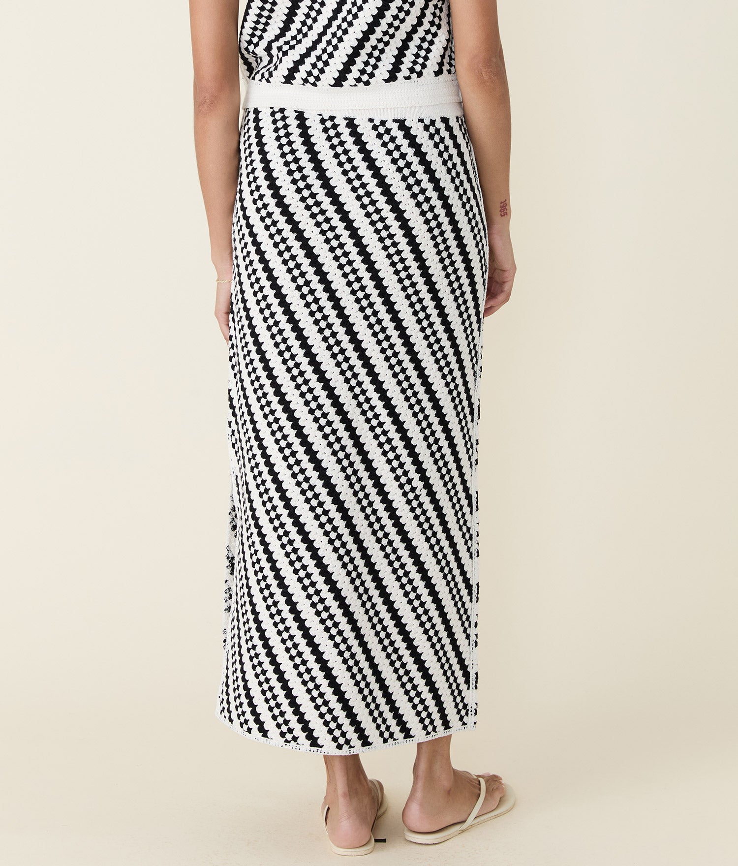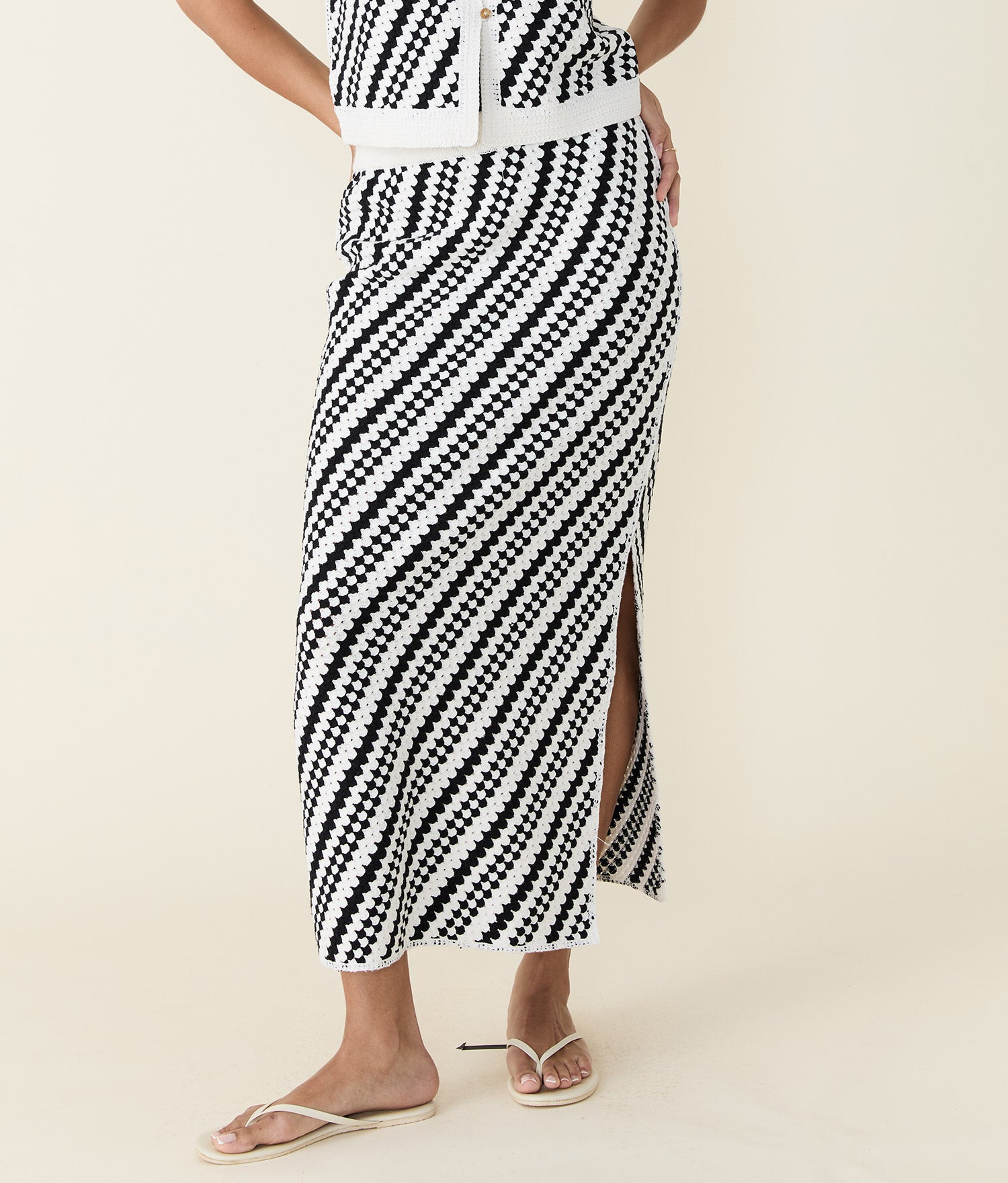 Sands Sweater Skirt - Cotton Crochet - Black - Cream Stripe