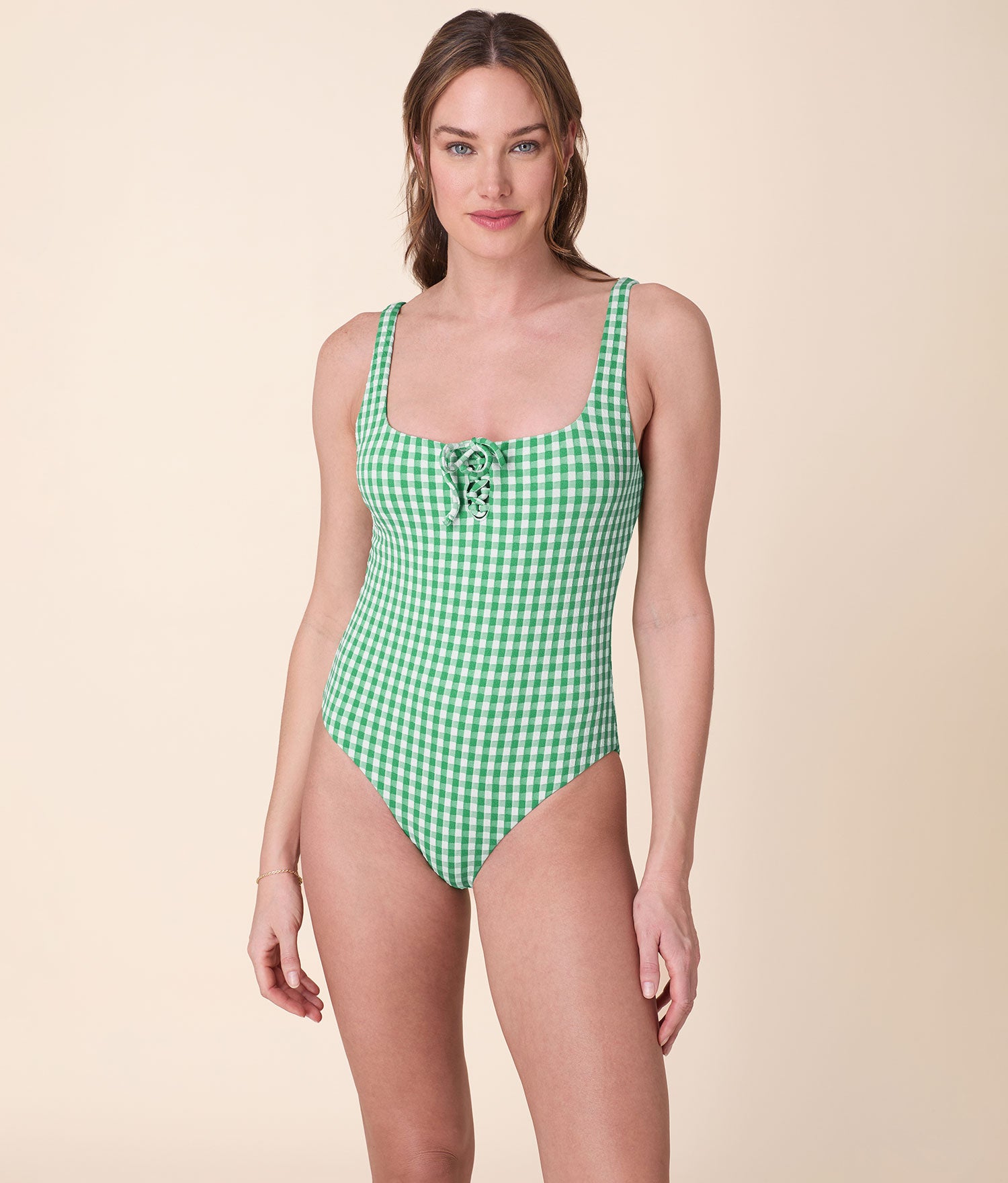 The Macao One Piece - Crinkle Gingham - Green Gingham - Classic
