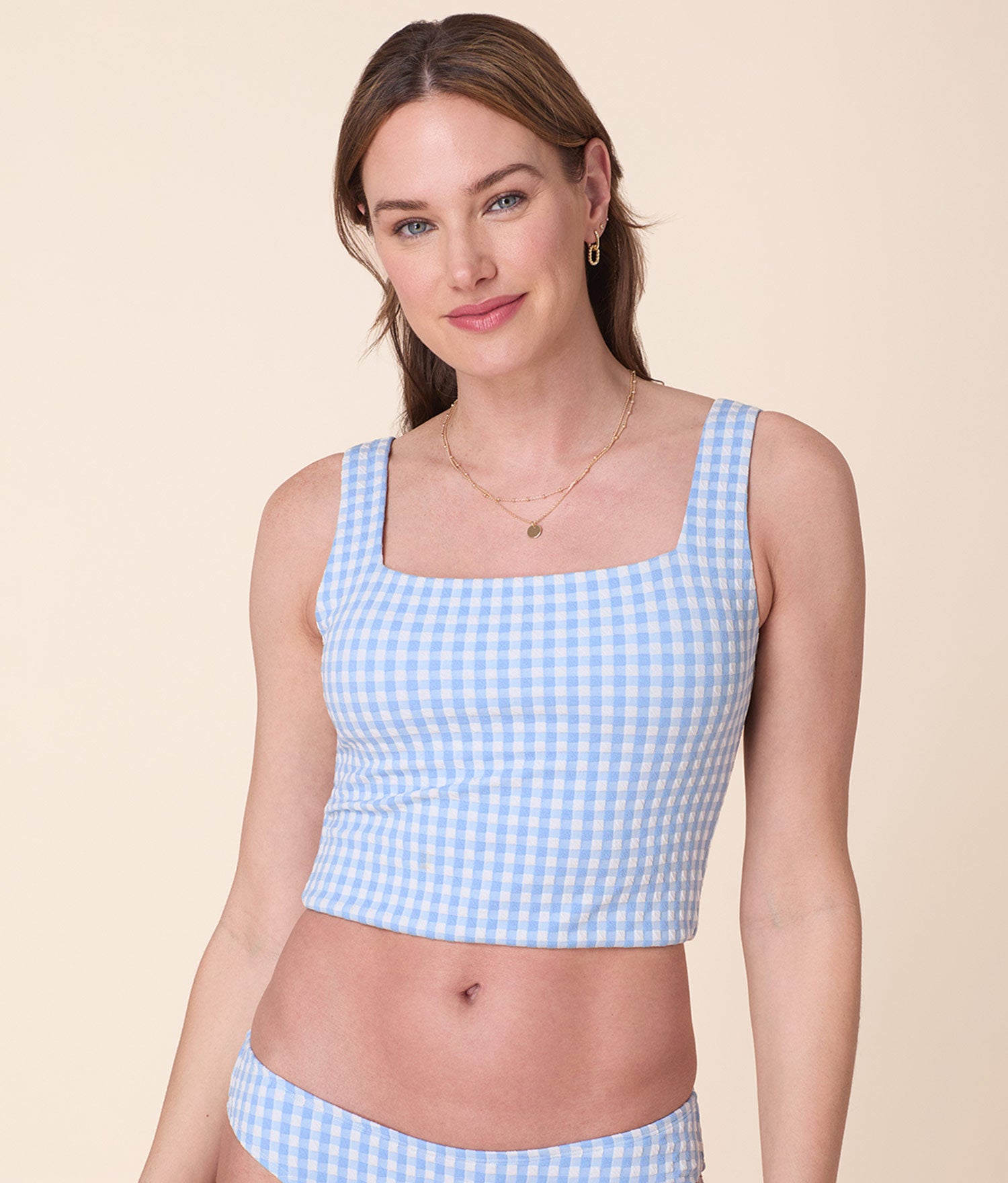 The Siren Swim Tank - Crinkle Gingham - Sky Gingham