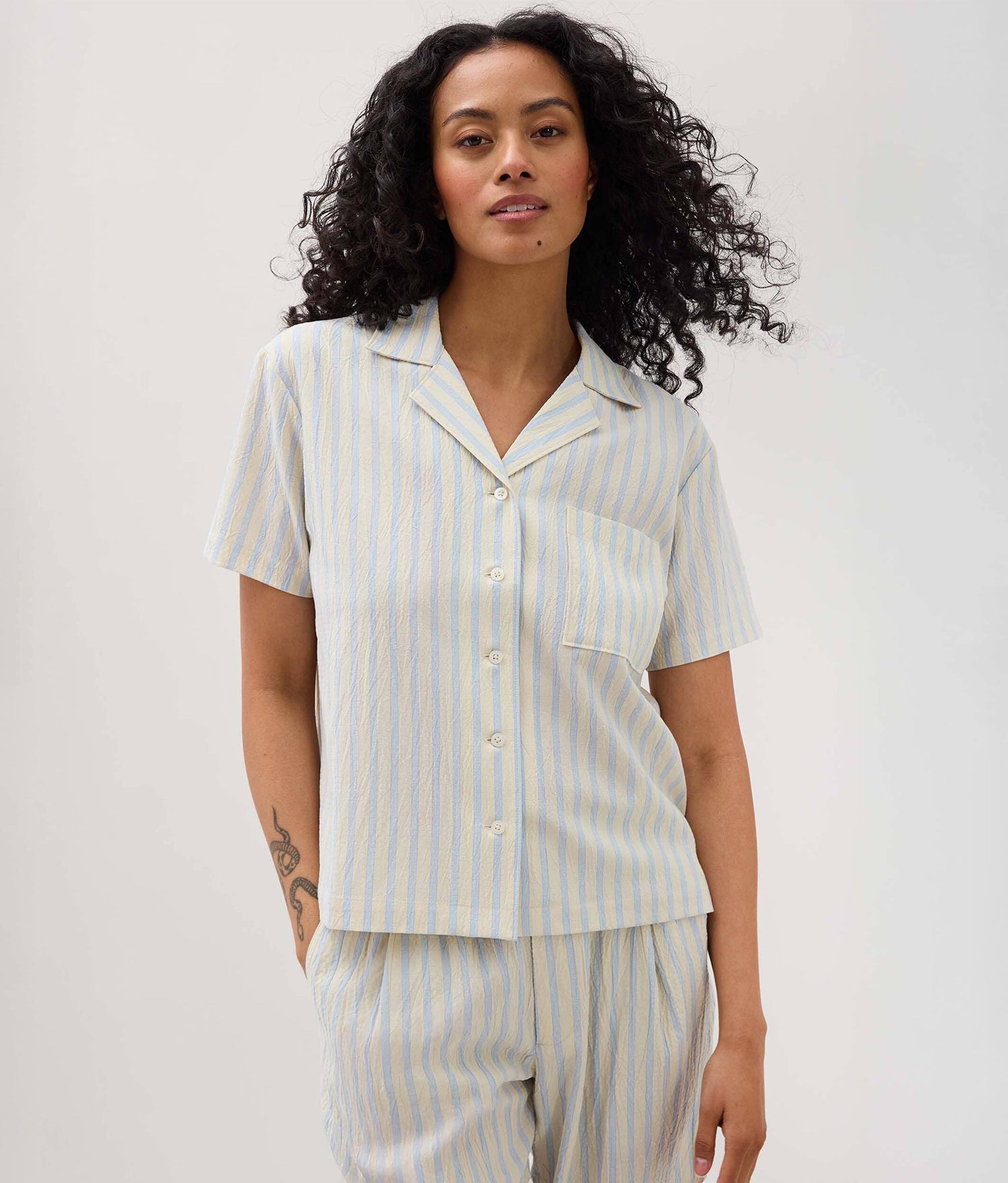 Jane Relaxed Linen Shirt - Linen - Yellow/White Stripe
