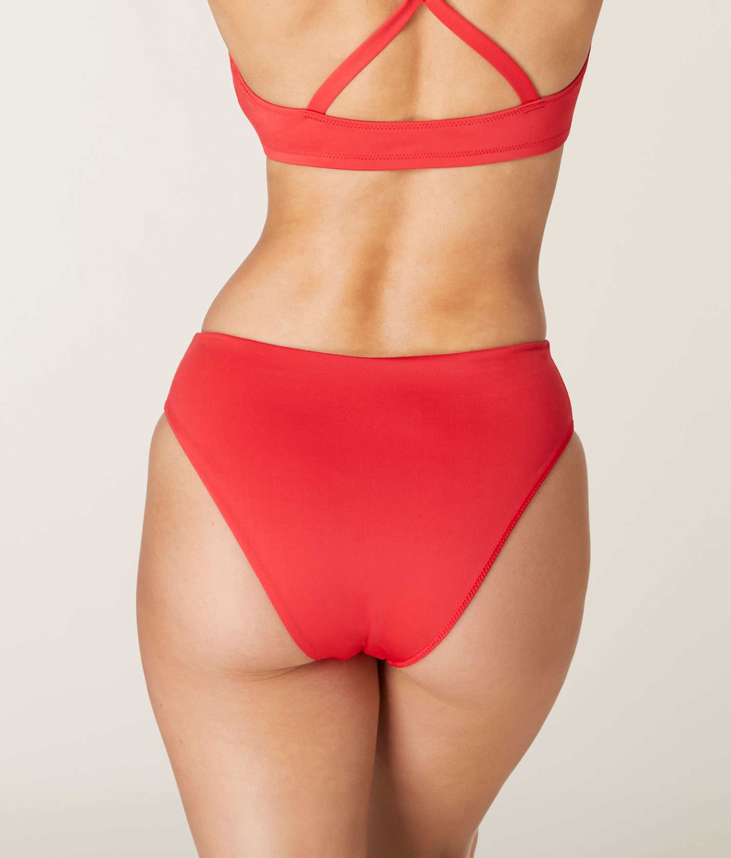The 90s High Waist Bikini Bottom - Eco Nylon - Cherry Red