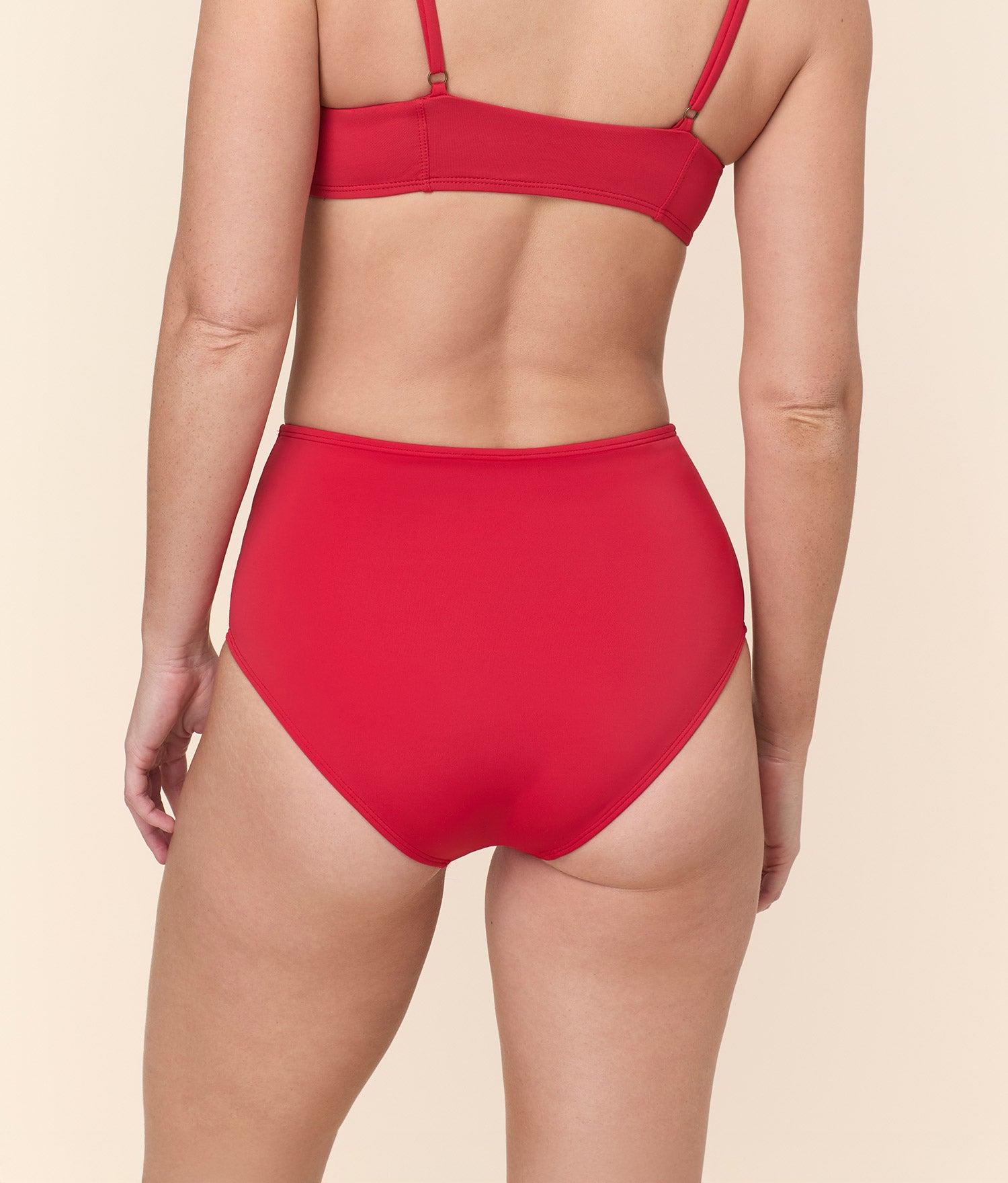 The High Waist Bikini Bottom - Eco Nylon - Cherry Red