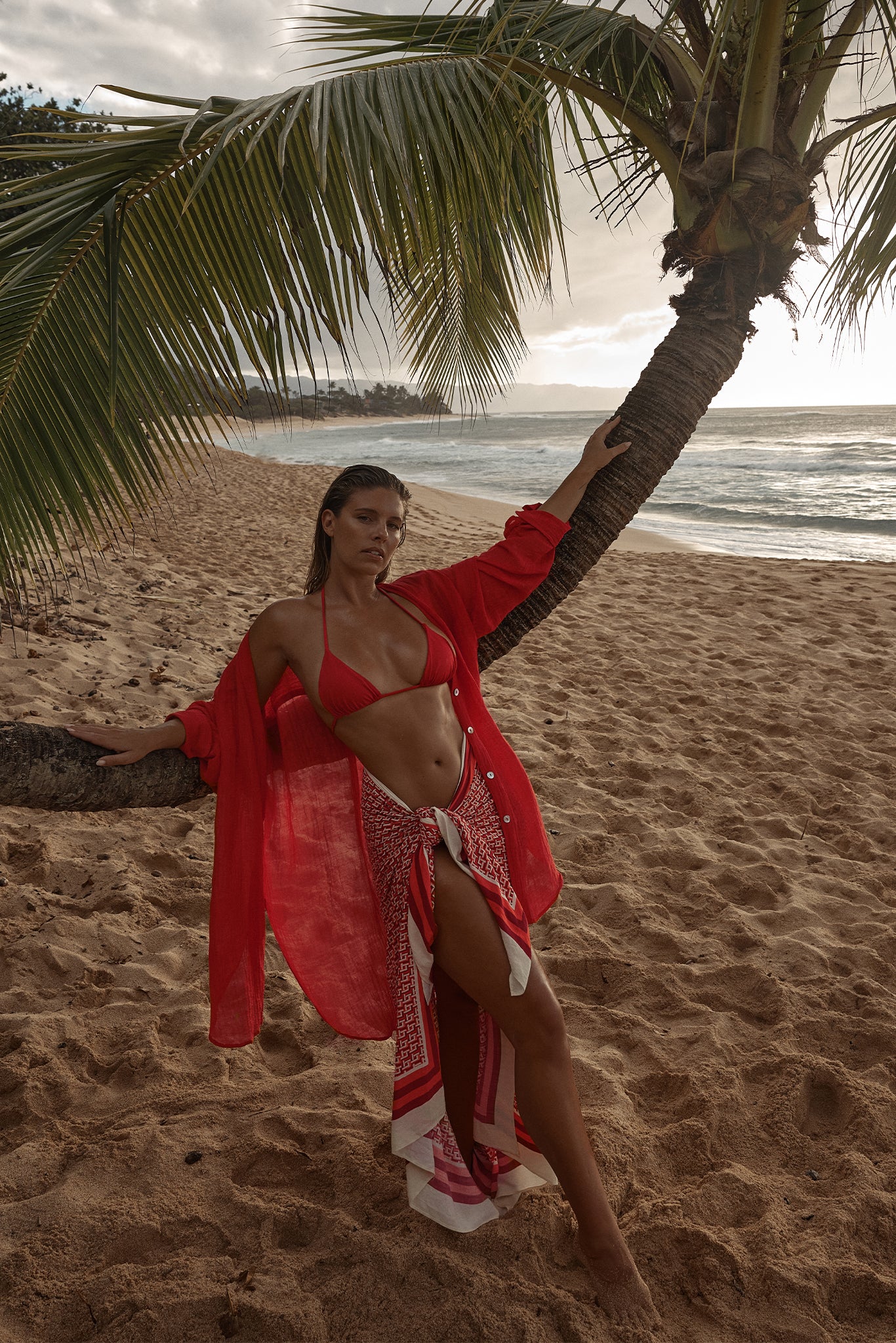 The ultimate beach to bar look can be achieved in the Barcelona Tunic. With an airy oversized fit, this transitional piece can be worn open, over your favorite swimwear or tied at the front with cute pants. Complete with side slits, flowy sleeves and center front seashell buttons.
