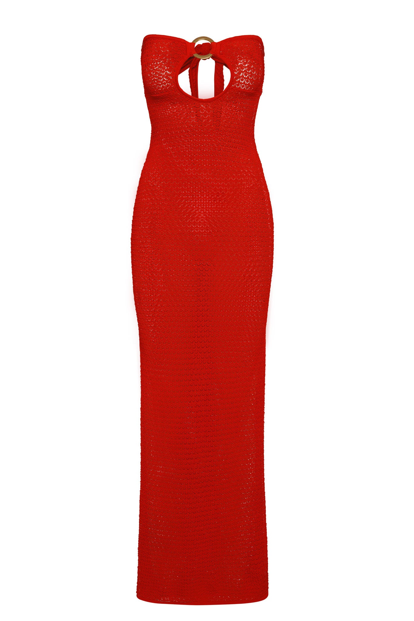 Montego Bandeau Dress - Chili Pepper Lace Crochet