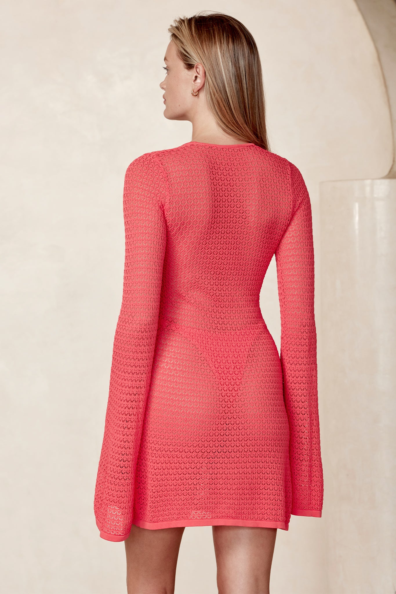 Our best selling dress now comes in a shorter option. This Montego Mini Dress is made in our lace crochet fabric with a plunging neckline, gold ring detail and a flattering silhouette that makes it the perfect dress.