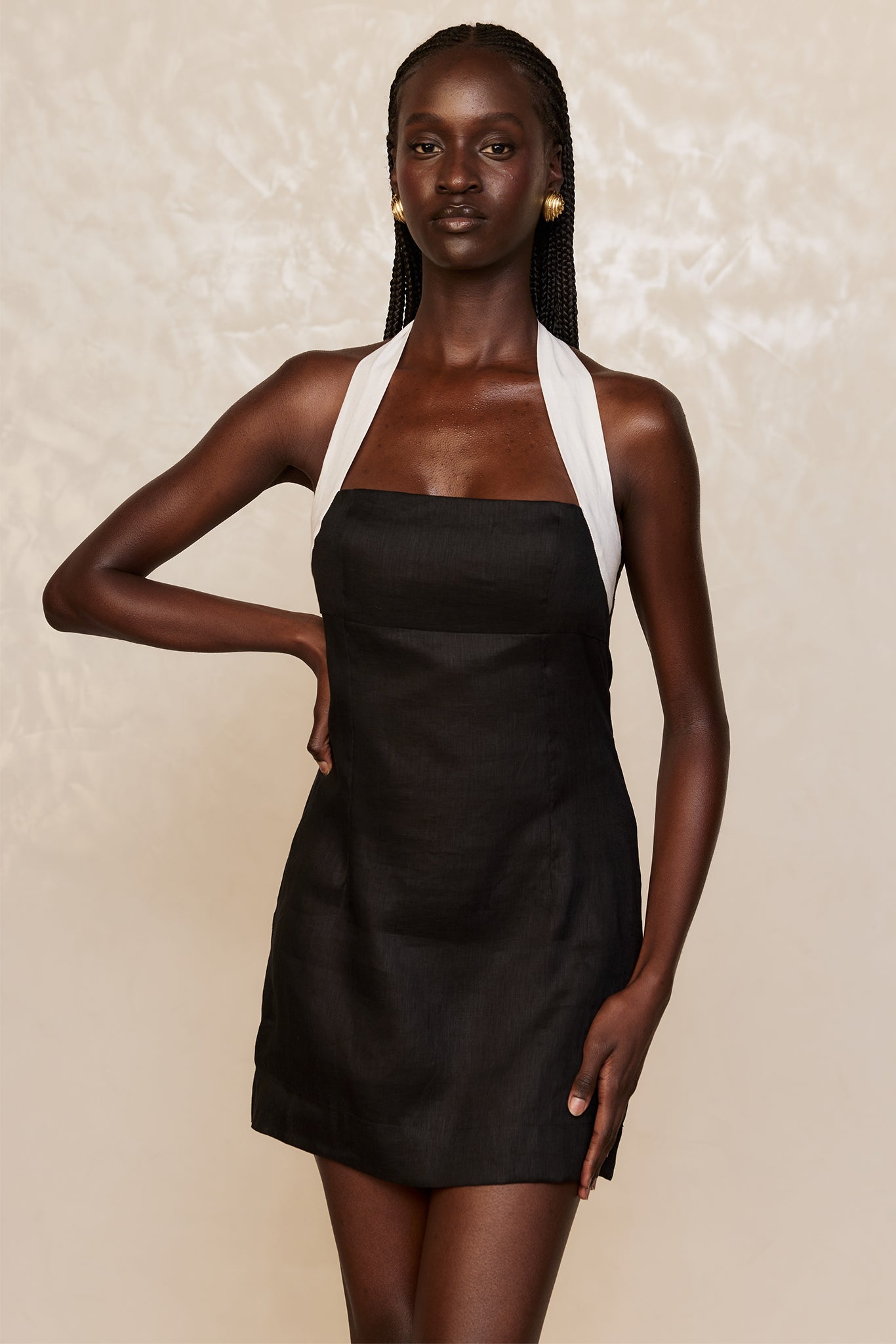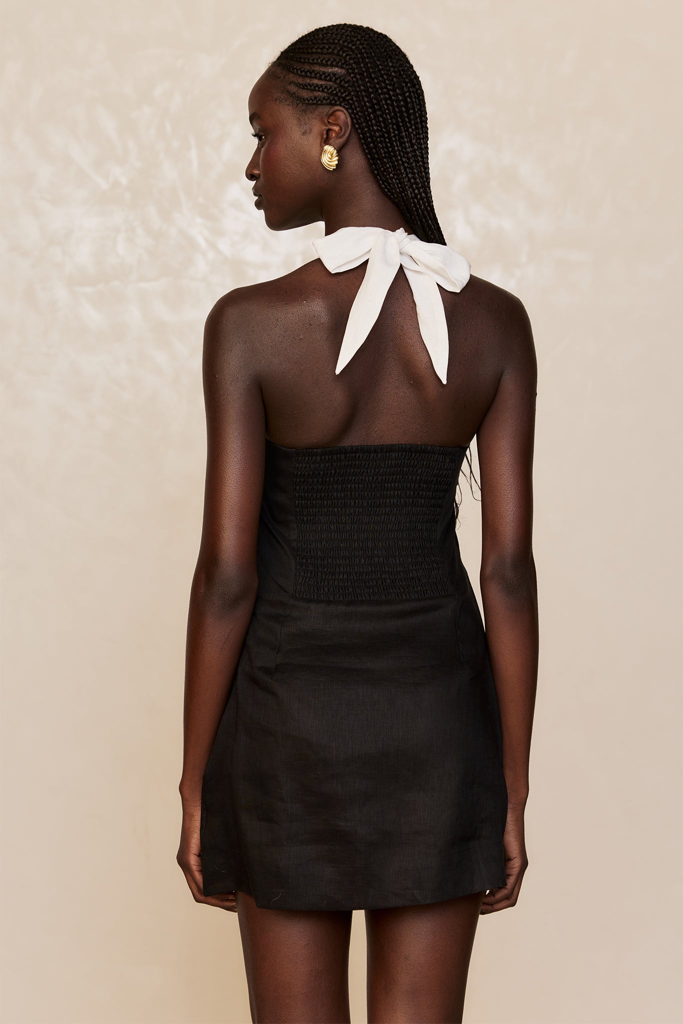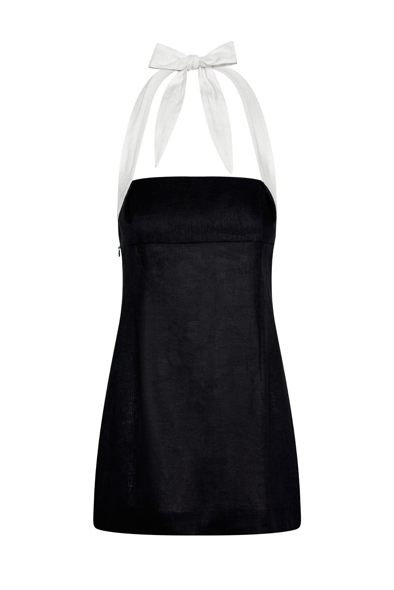 Classic & chic, this linen mini dress is made for warm-weather escapes. It features a chic square neckline and a halter design with adjustable ties for a personalized fit. The smocked back adds comfort and ease, while the invisible side zip keeps the look sleek. Lightweight and effortlessly stylish, the Montserrat Mini Dress is your perfect vacation-ready piece.