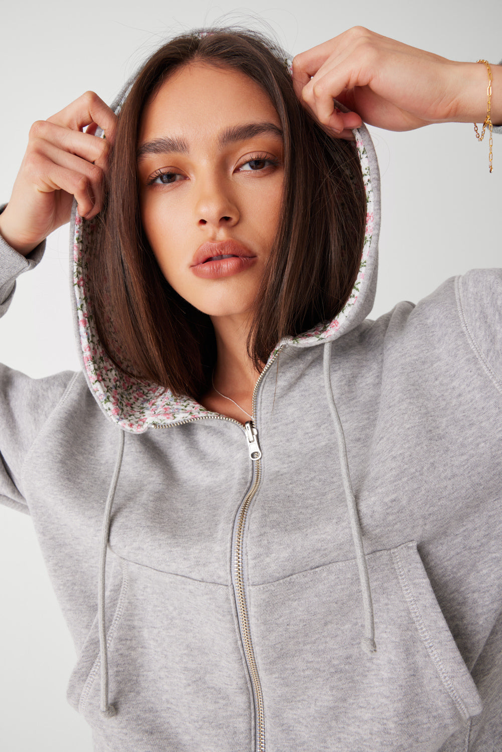 A perfectly oversized hoodie... meet Casper, a new cozy zip-up hoodie that's lined in our sweetest floral print, Baby Blanket. Complete the lounge look with the matching Avalon sweat pant.