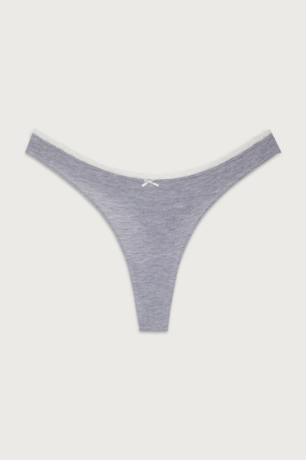 A classic Frankies silhouette, now as undies. The Maisie thong is designed in a soft cotton fabric with a dainty bow detail and lace trim. Snuggle up all season long in the Maisie thong and matching Archie tee.