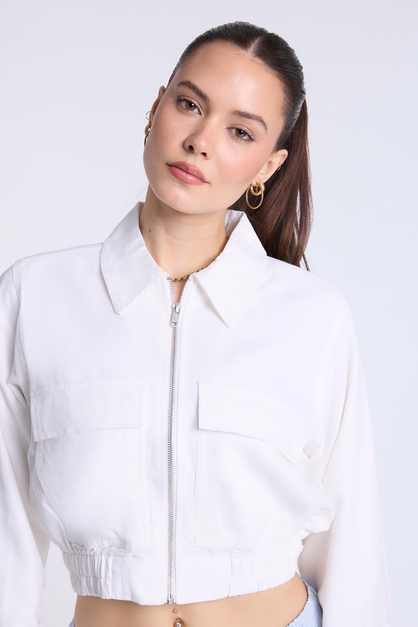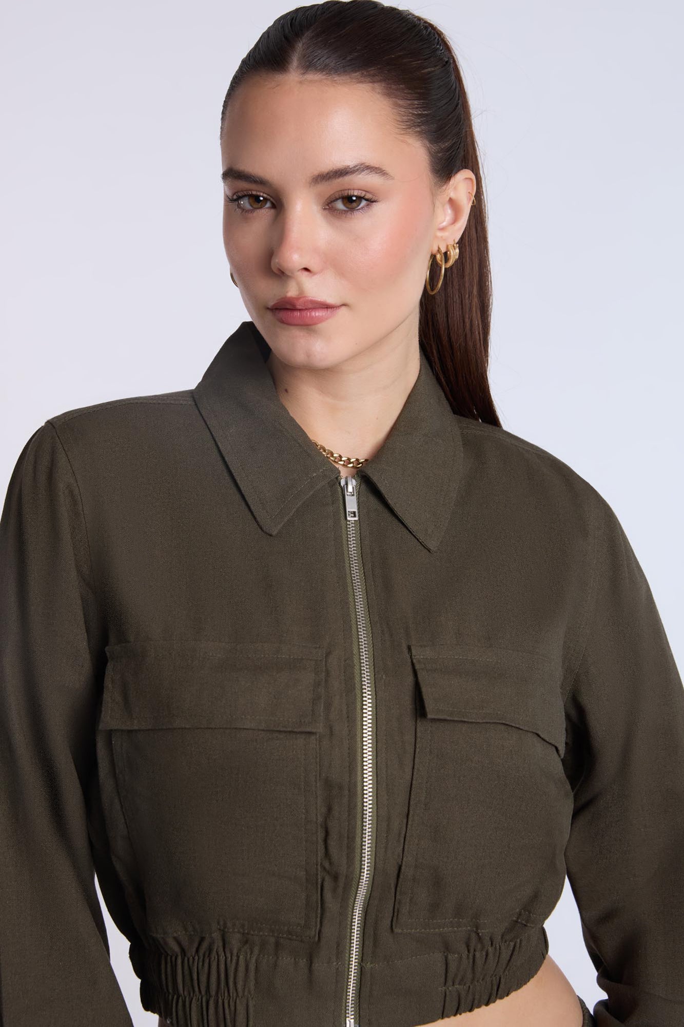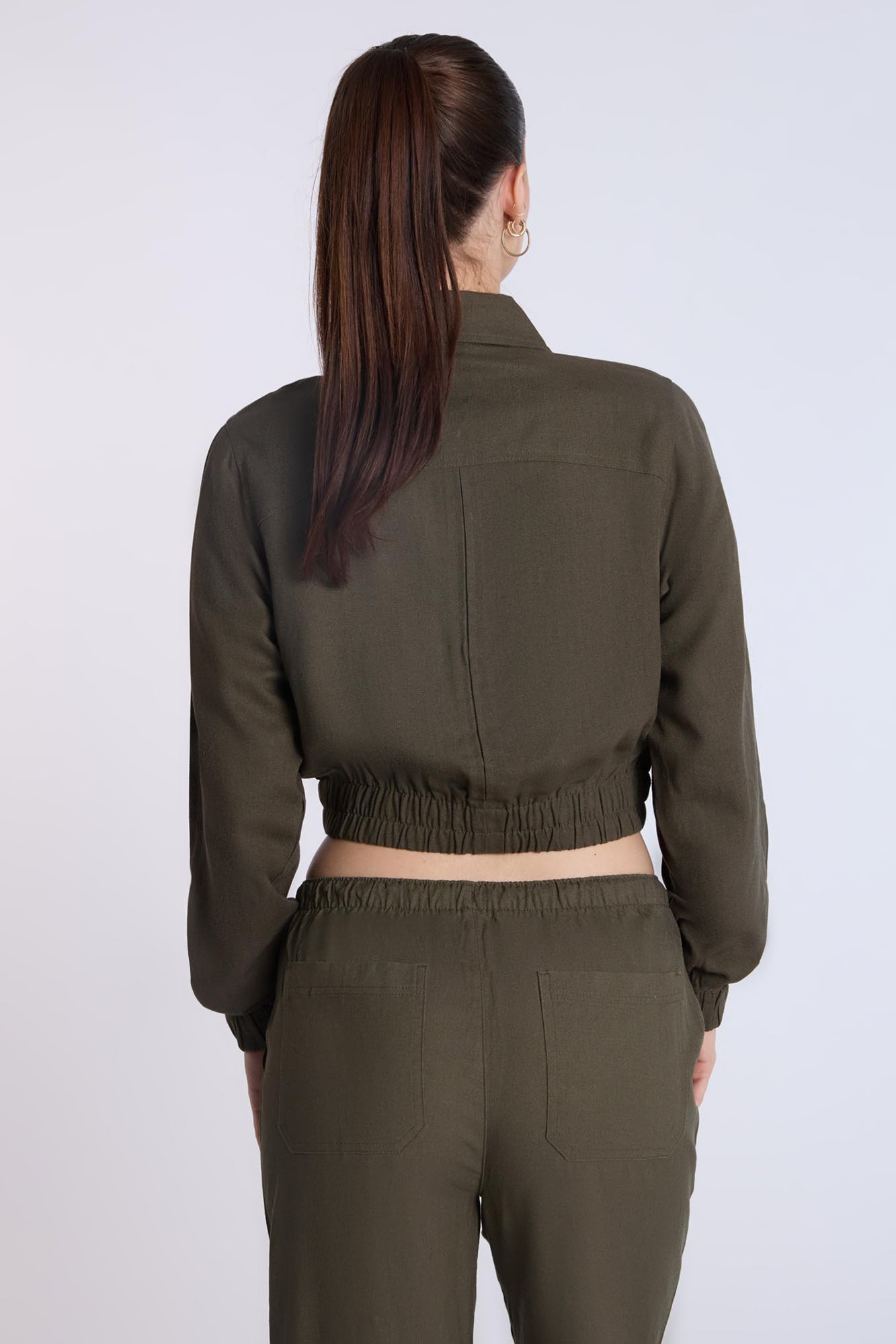 Woven outerwear. Linen-blend fabric. Breathable. Lightweight. Available in multiple solid colours. Relaxed bomber jacket with a zipped-front. Cargo pockets.