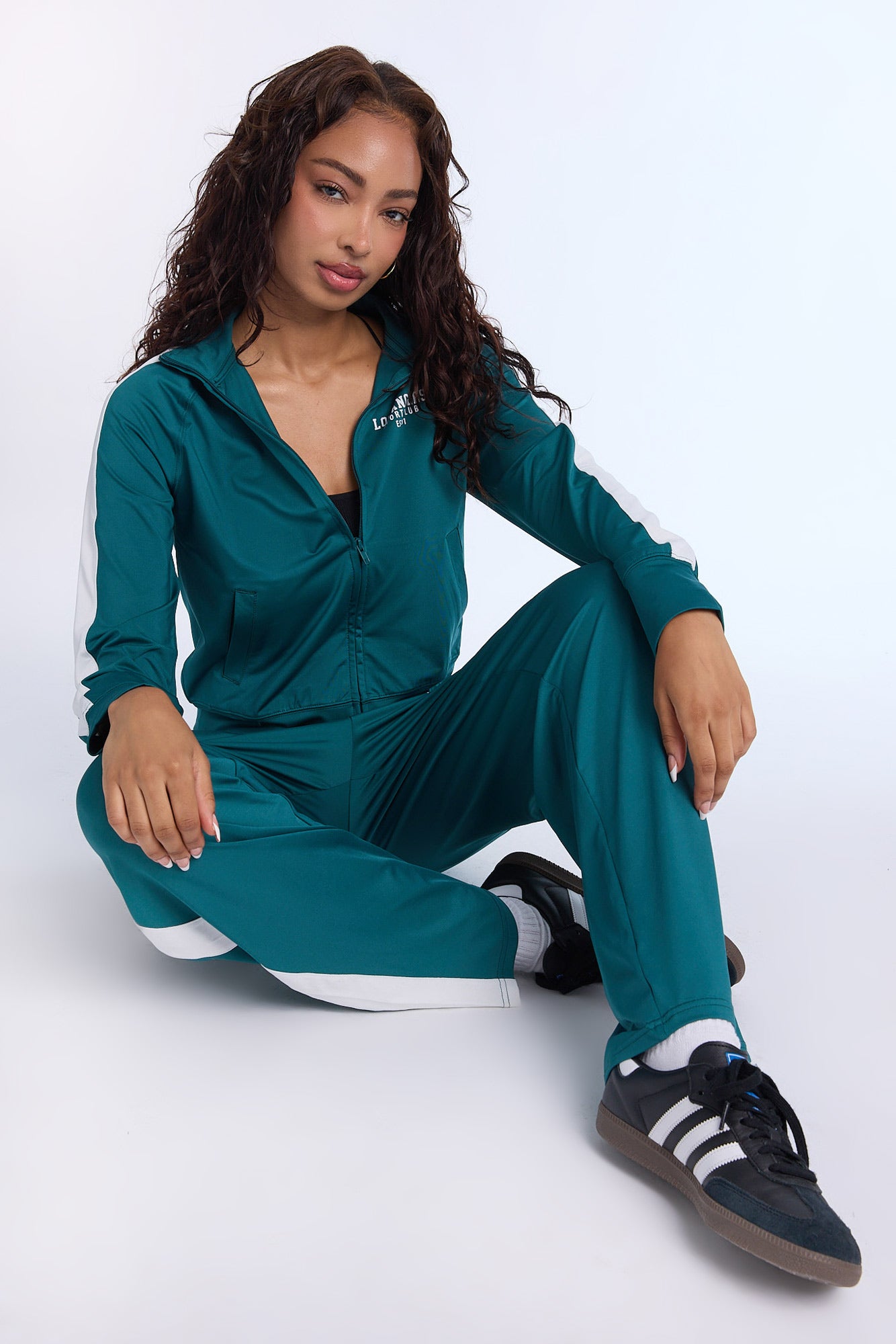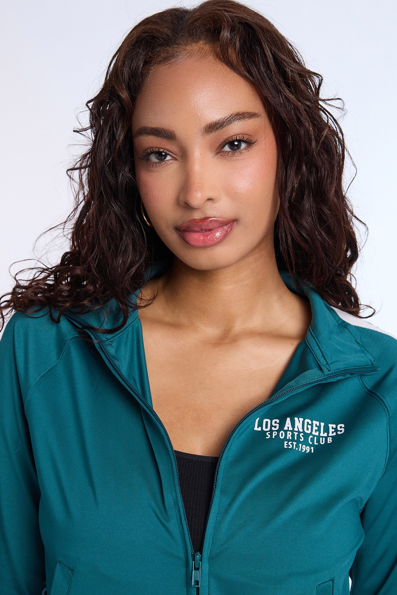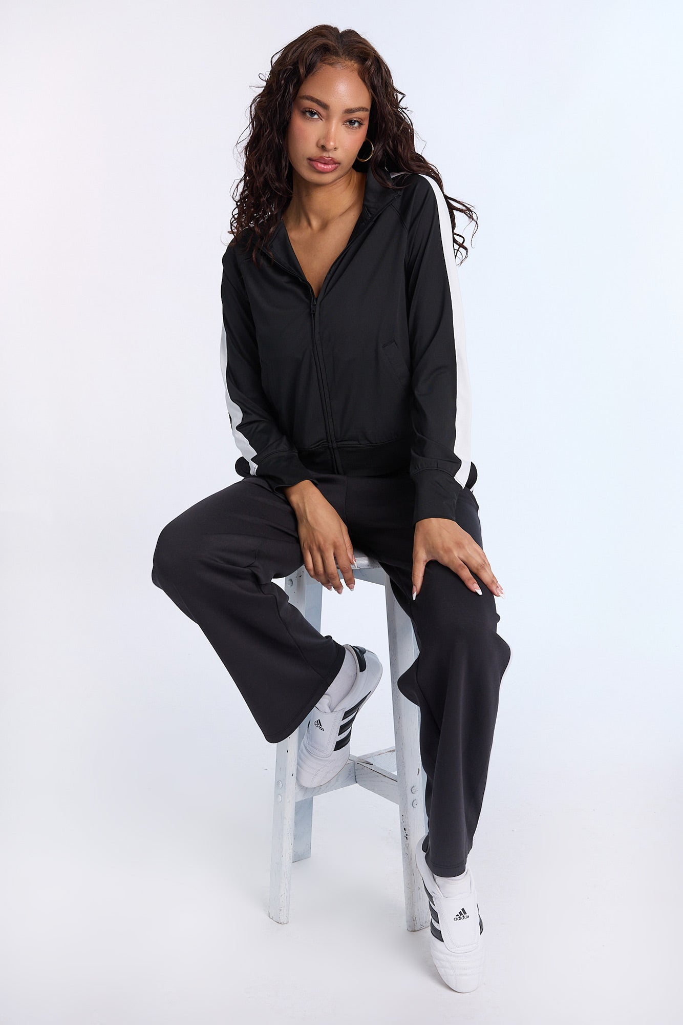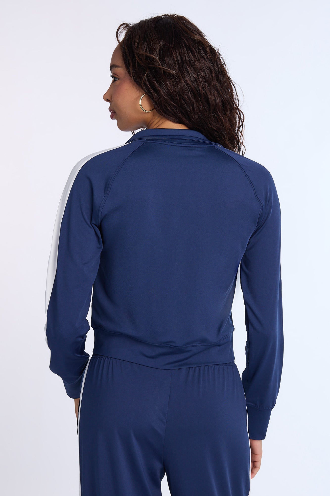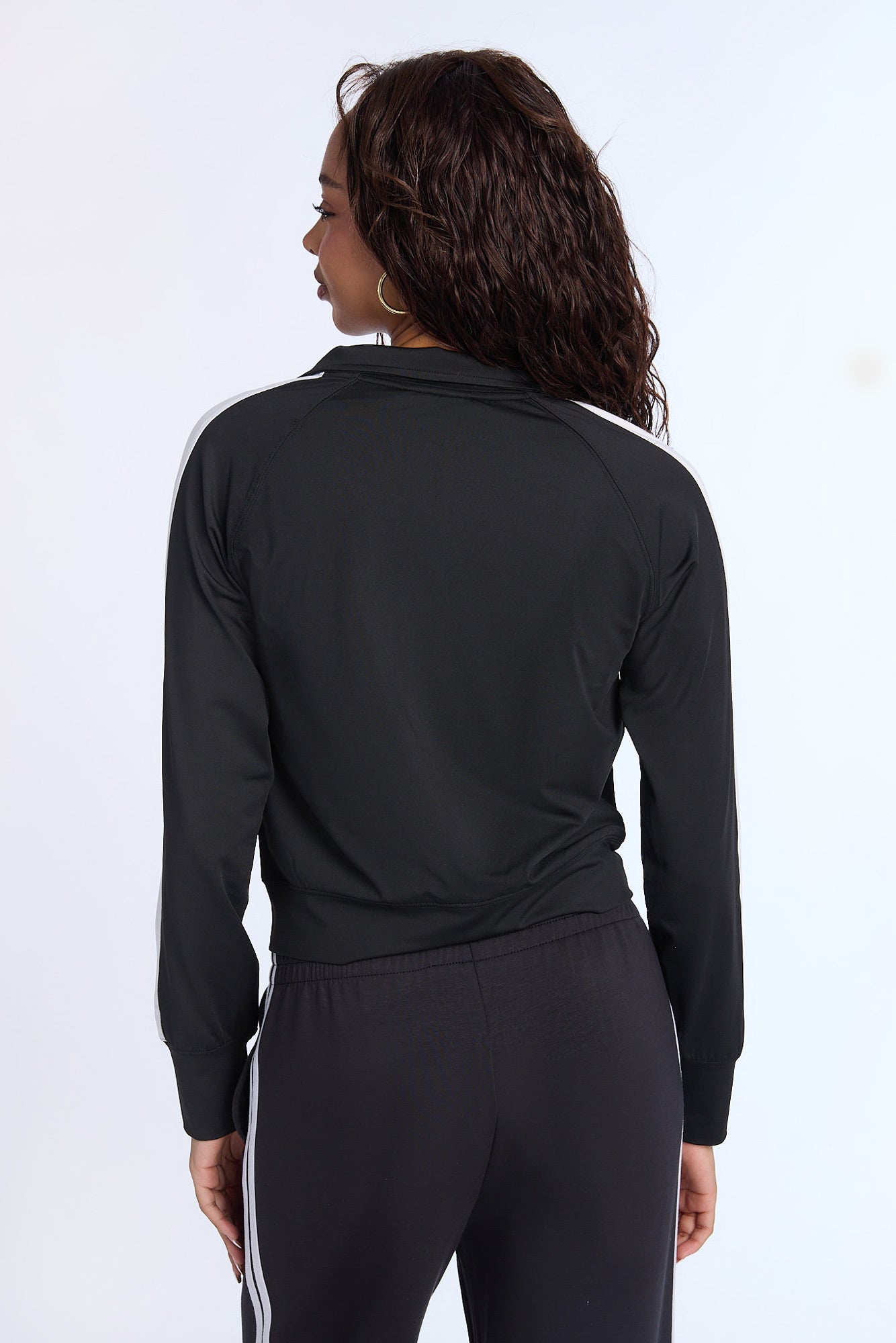 Sport chic and made for layering. This zip-up track jacket features lightweight fabric with sporty stripes and a relaxed and baggy silhouette. Zip it up for workouts or wear open as a light layer over tees.