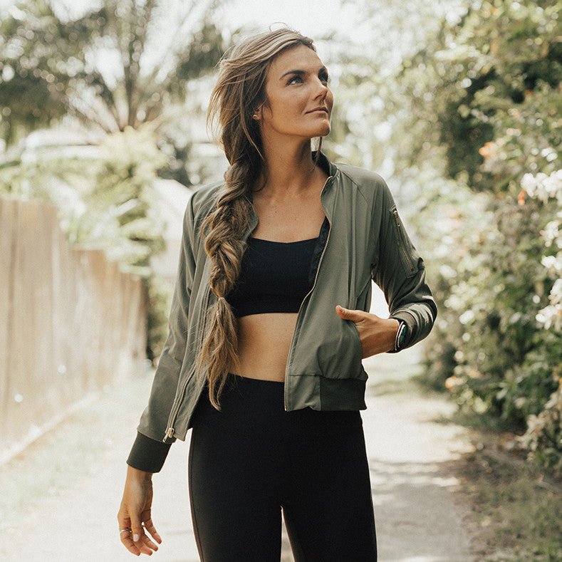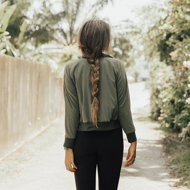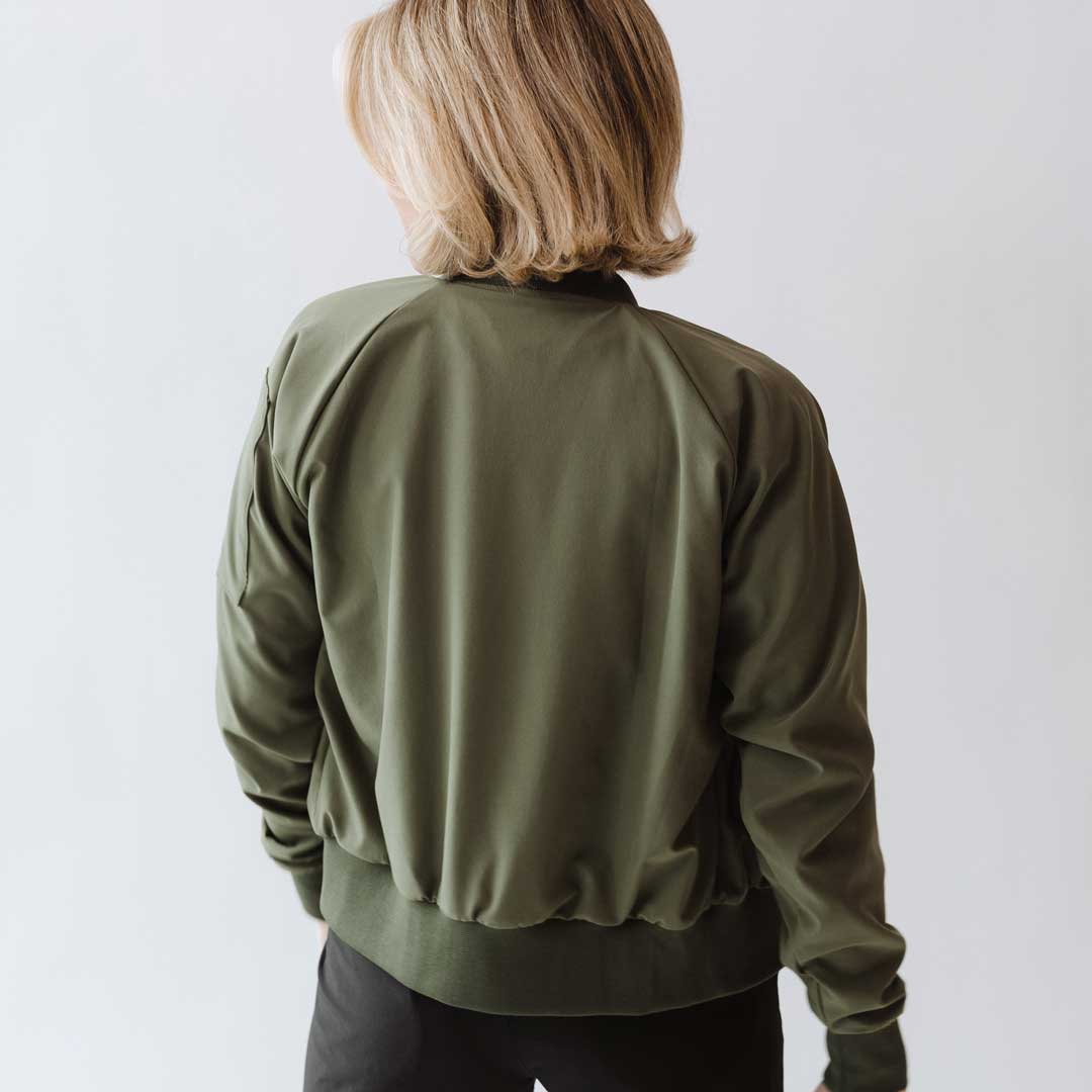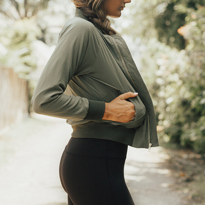 - Sage green bomber jacket